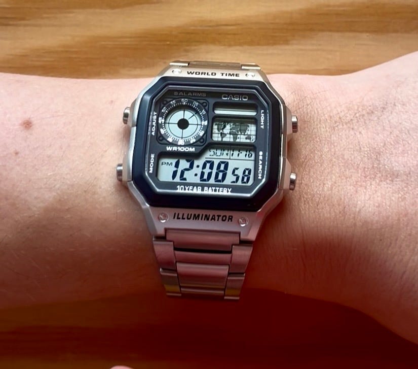 And once I was free of the Apple Watch for a few months, I decided that maybe I wanted a watch that was just good at being a watch. The Casio Royale is what passed as a smart watch in the 90s and 00s — it has a timer, stopwatch, alarm, and world time clock, and it has a delightful retro-futuristic aesthetic. It turns out there’s a whole subculture around Casio watches and now whenever I see one out and about I feel like I’m in on something.