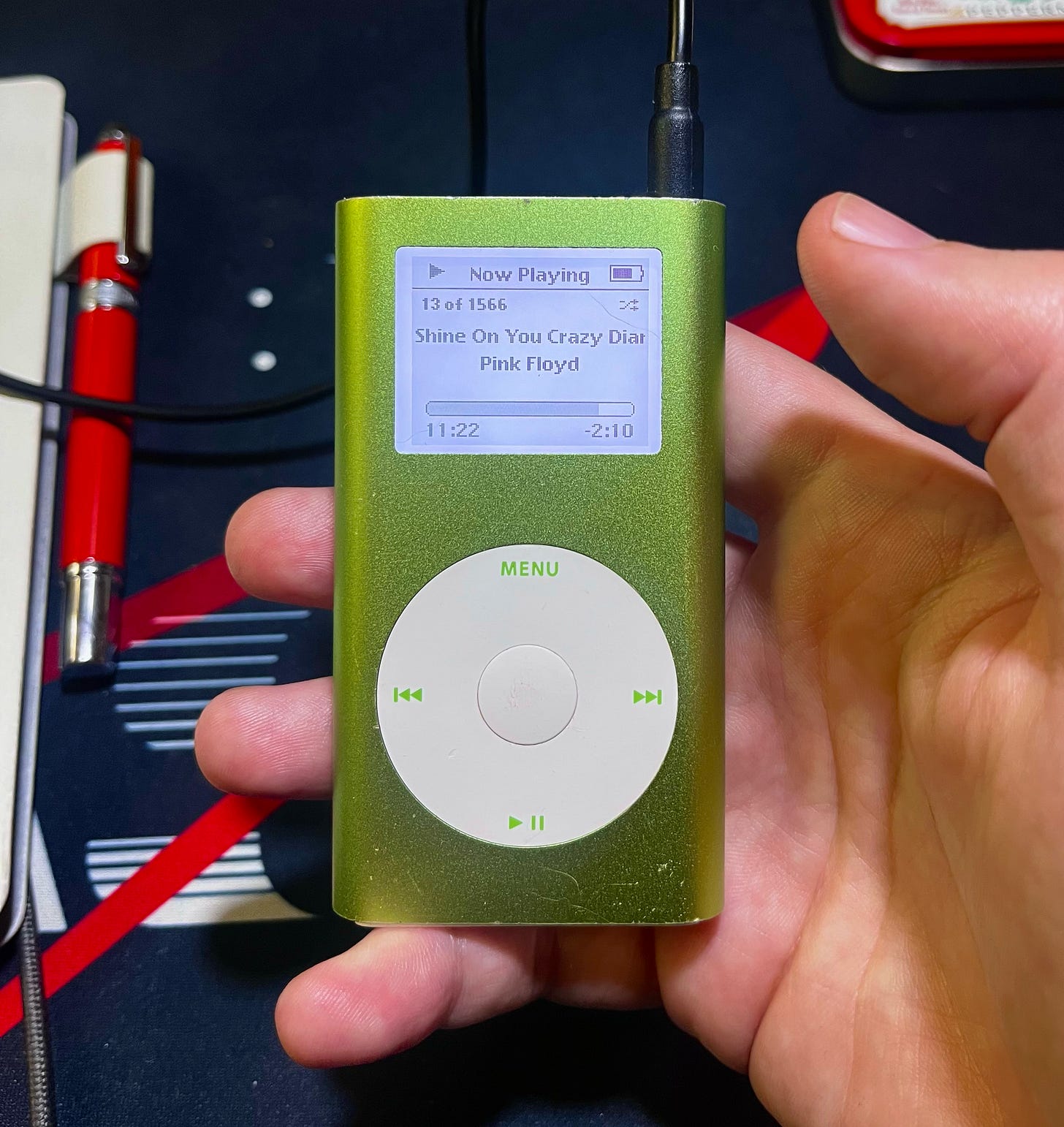 I spent weeks monkeying with near-dead iPods from eBay and the new crop of Android-based “digital audio players” (which are mostly uninteresting to me). I settled on an iPod Mini with a fresh battery and expanded flash memory. The clickwheel is unbeatable and non-algorithmic “shuffle all songs” is a killer feature. I also found that listening to music through wired in-ear monitors sounded meaningfully different than my AirPods.